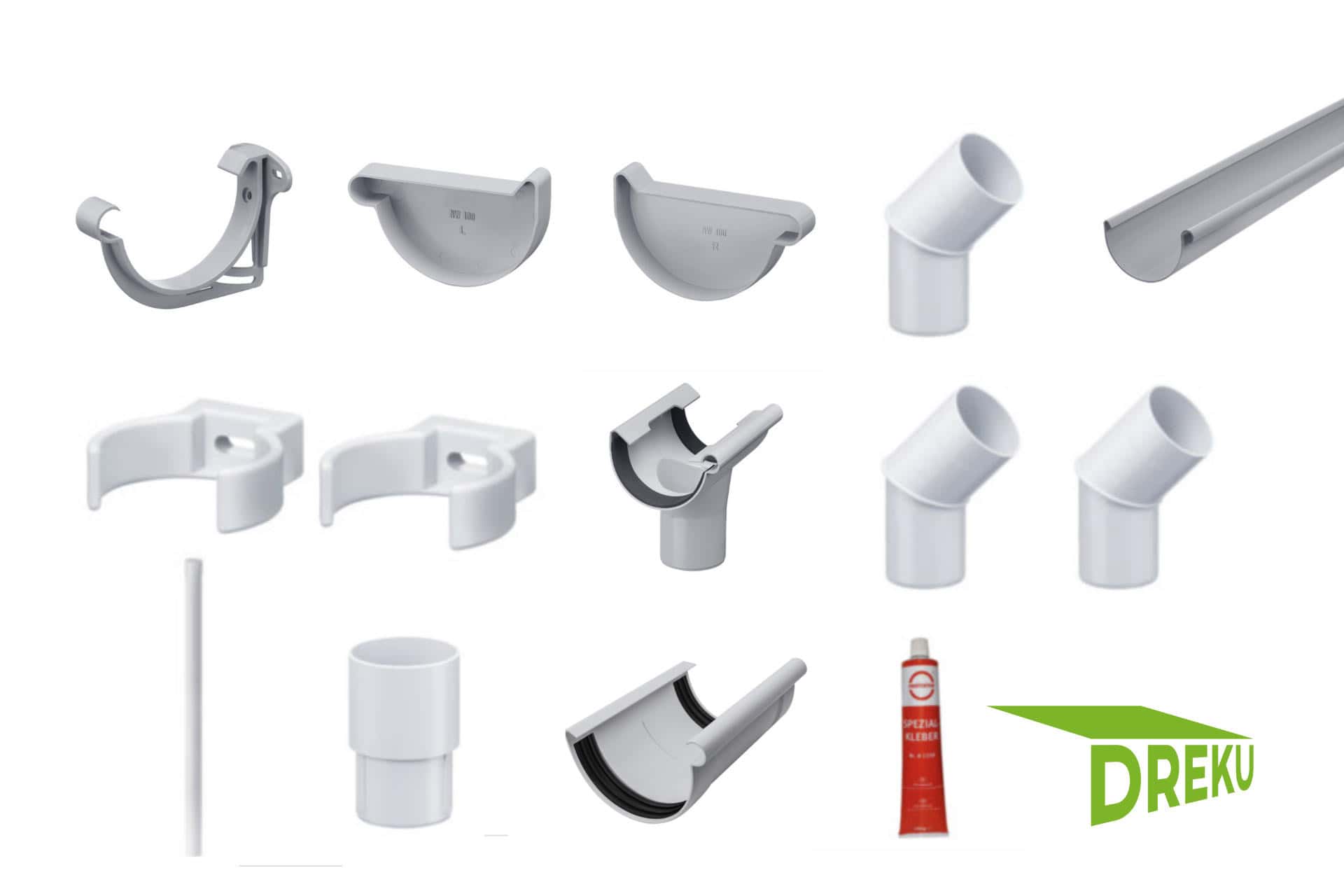 Rundrinne Kunststoff NW100 „grau“ Zubehör des Komplettsets siehe unter Kurzbeschreibung. Zuschnitte können unter „Zuschnitt“ angegeben werden. Dieser Kunststoff ist weichmacherfrei und kann nicht verspröden. Der hochwertige Rohstoff sichert Schlagzähigkeit, UV-Beständigkeit und Formstabilität. Er ist Säure- und Laugenbeständig. Bei der Kastenrinne müssen aus technischen Gründen sämtliche Teile geklebt werden.