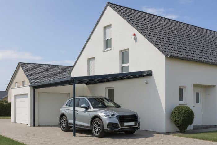 Mit dem ANLEHN Carport von DREKU schaffen Sie sicheren und stilvollen Schutz für Ihr Fahrzeug – langlebig, wartungsarm und perfekt auf Ihr Zuhause abgestimmt.